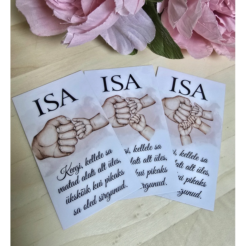 Personaliseeritud lamineeritud magnet, millele on jäädvustatud kuni 5 lapse käejälge. Südantsoojendav ja eriline kingitus isale.
