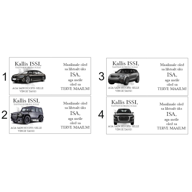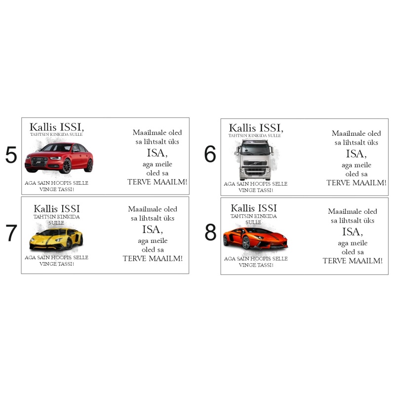 Tassi tellimiseks kirjuta soovitud kujunduse number tellimuse vormistamisel kommentaaride lahtrisse.