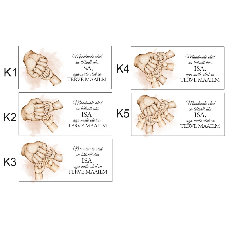Kujunduse number kirjuta tellimuse lõpus olevasse kommentaaride kasti.
