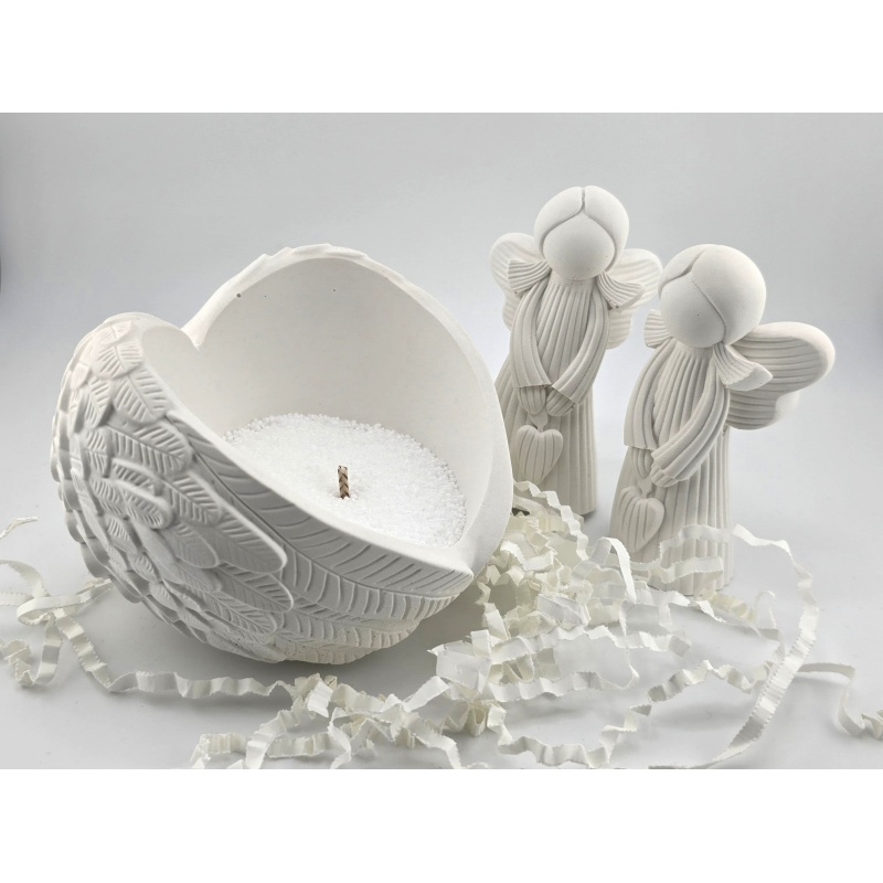 Kaunis ja tähendusrikas sisustuselement, mis loob sooja ja rahuliku meeleolu igas ruumis. Komplektis on elegantne inglitiiva kujuline alus, 80 g puuderküünal, kaks väikest inglitiiva kujukest ning magnet dekoratiivseks lisaks kingipakendil.
