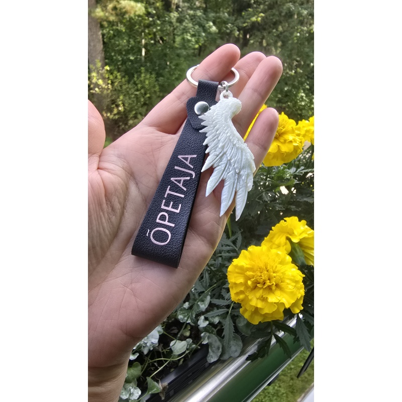Tiiva võtmehoidja ja nahast ripats tekstiga Õpetaja